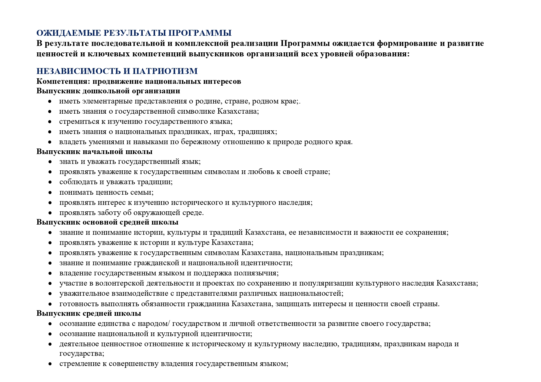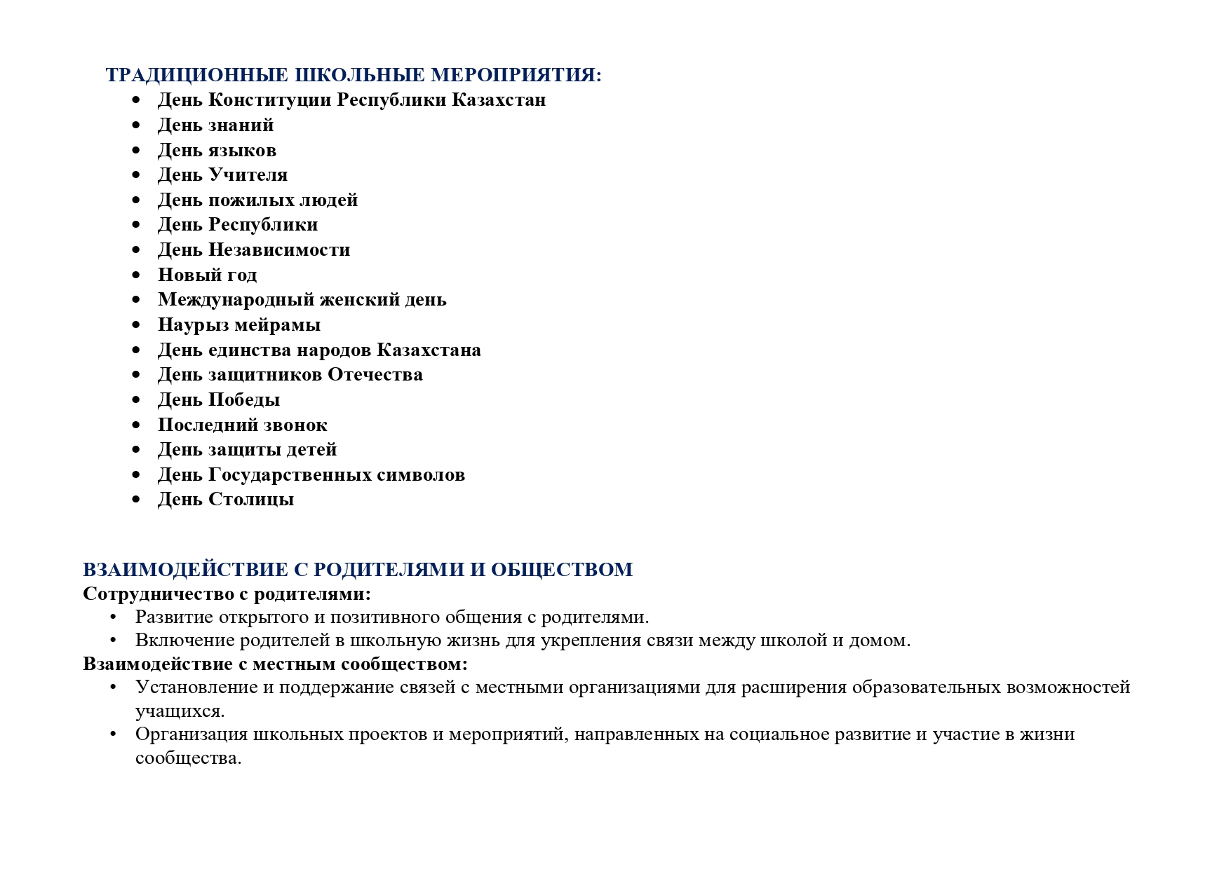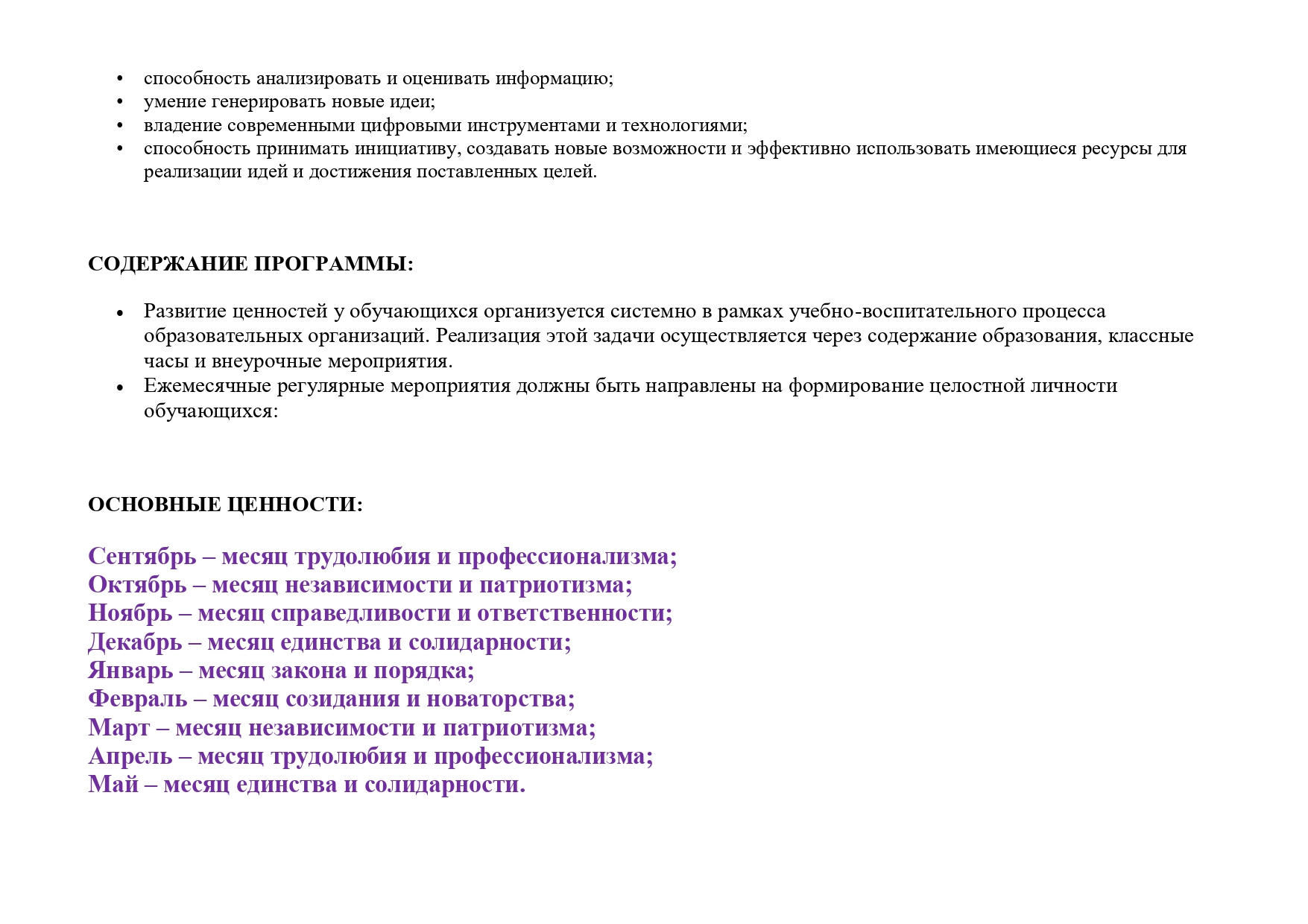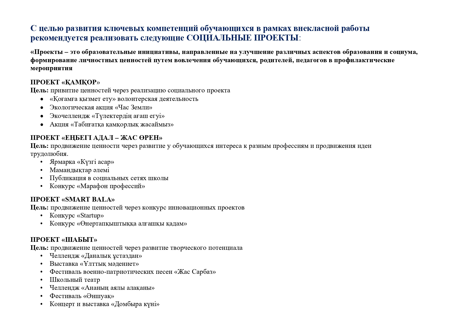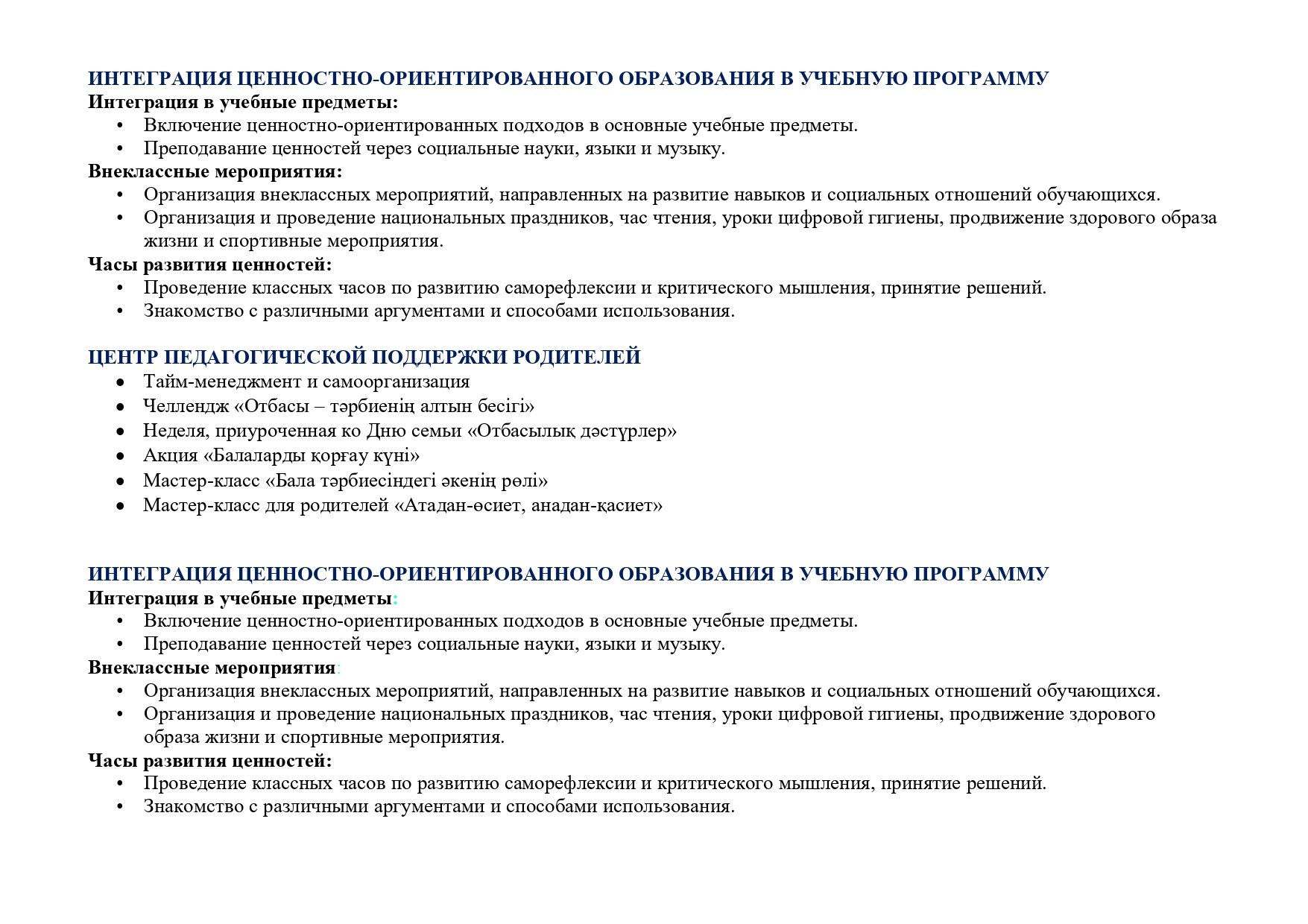 Воспитательный план — КГУ «Летовочная средняя школа» отдела образования Тайыншинского района