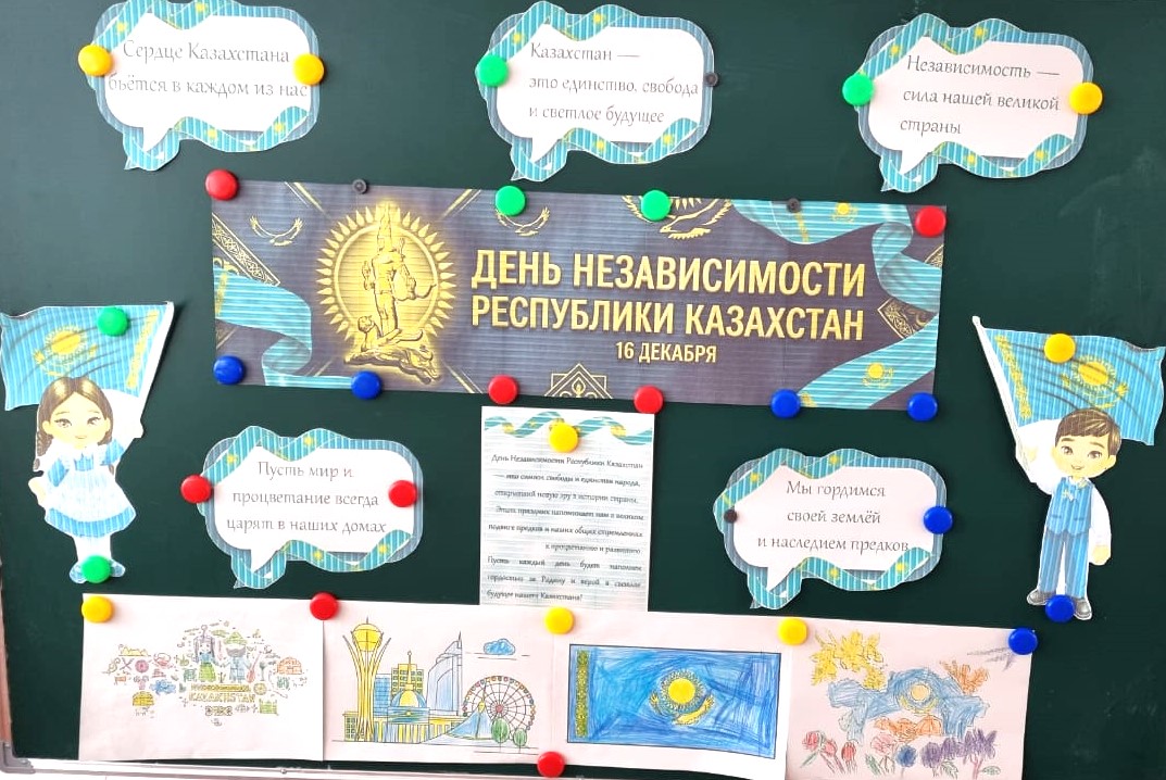 Мектепте Тәуелсіздік күнін мерекелеу аясында сынып сағаттары өткізілді. Іс-шаралар барысында оқушылар мерекенің тарихы мен маңызы туралы білді, мемлекеттік рәміздерді талқылады және патриоттық сезімдерін көрсетті.