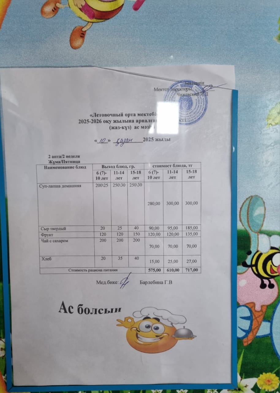 Меню — КГУ «Летовочная средняя школа» отдела образования Тайыншинского района